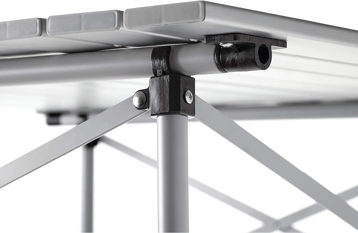 The snap-together design is intuitive. The steel frame unfolds in one step, and the aluminum slats snap in place for a secure surface in under 3 minutes.
