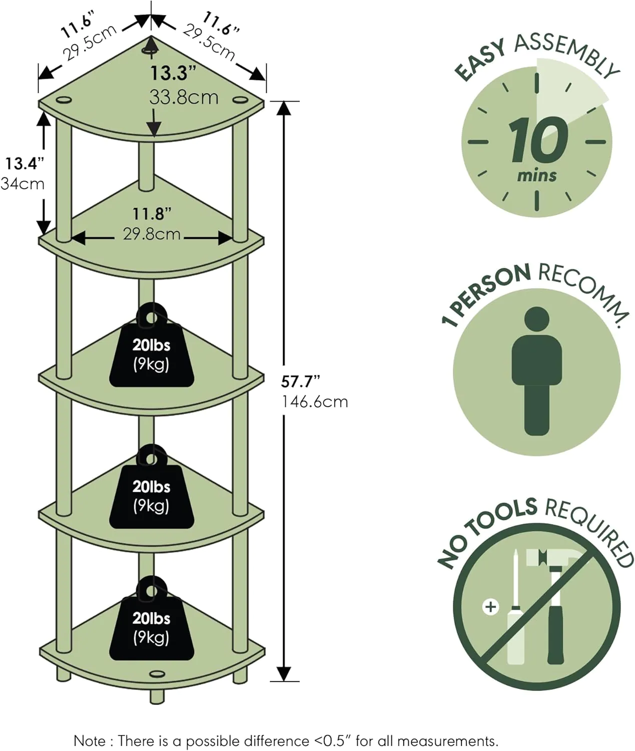 Maximize your space with the Furinno TURN-N-TUBE 5-Tier Corner Bookshelf, a stylish and functional storage solution from the Furinno Store. Designed with a space-saving vertical profile, this corner shelf fits perfectly into tight spots, making it ideal for apartments and small rooms. The sturdy construction, FSC-certified wood, and included wall-anchor provide lasting durability and safety, while each shelf holds up to 20 lbs—perfect for books, decor, or essentials. Effortlessly quick to assemble and available in multiple colors, this versatile organizer elevates any living room, bedroom, or office.