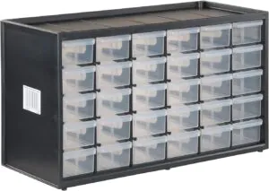 Its sleek black design fits seamlessly into any workspace or garage cabinet setup, while the combination of large and small drawers lets users customize screw storage and nuts and bolts separation. With clear, smooth-sliding drawers that make it easy to see what’s inside at a glance, the device is perfect for hobbyists, handymen, and crafters alike.